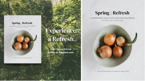 Everyday Sanctuary's new book, Spring Refresh: A Refreshing Daily Faith Practice for Spring, is 6 weeks of simple spiritual practice you can do in as little as 5 minutes a day. Each week includes the wisdom of Breath, Presence, Prayer, Scripture, and Gratitude.